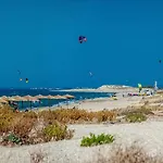 The Agios Ioannis accommodation is equipped with coffee and tea making machines, a fridge, and kitchenware for self-catering in a dining area.